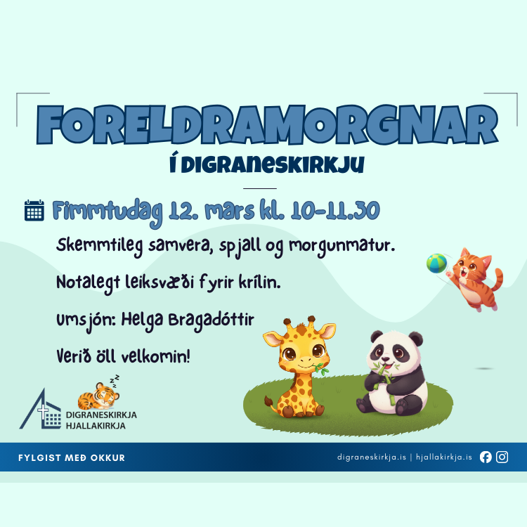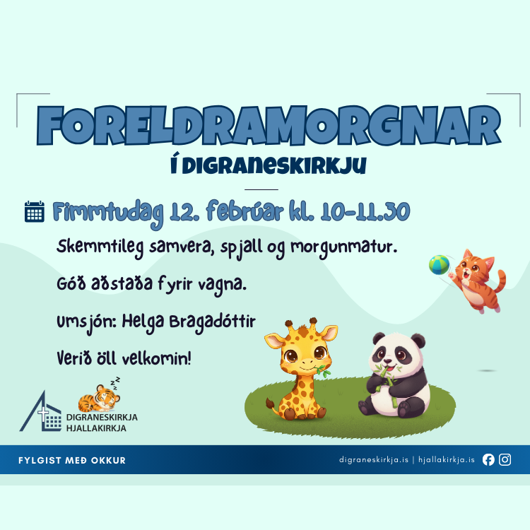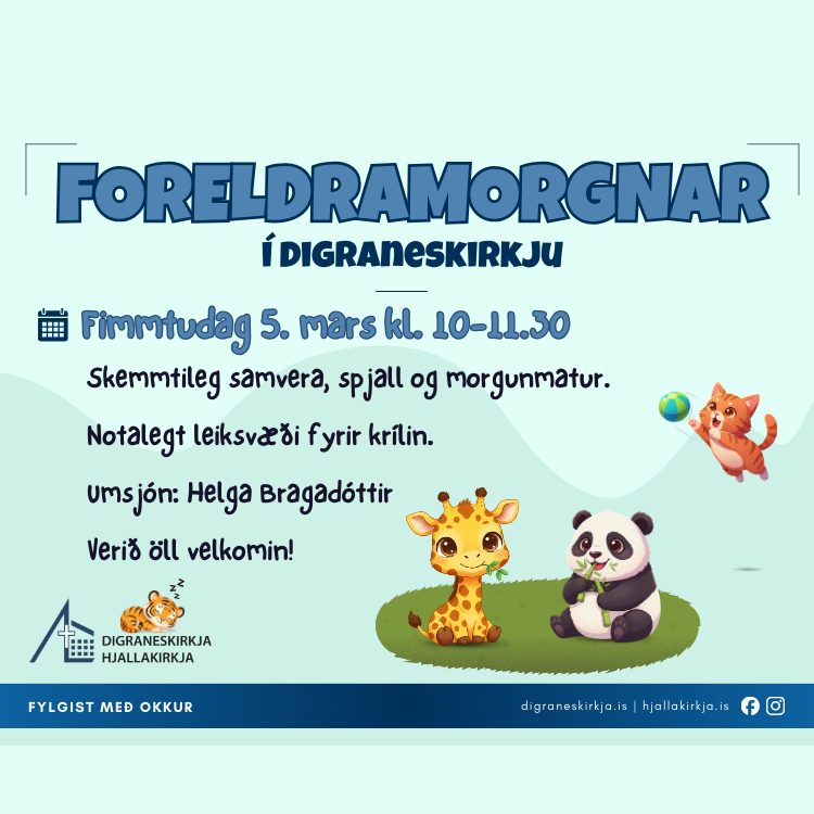 Foreldramorgnar verða á sínum stað á fimmtudag kl. 10-11:30 í Digraneskirkju (neðri hæð) 🩵 Endilega