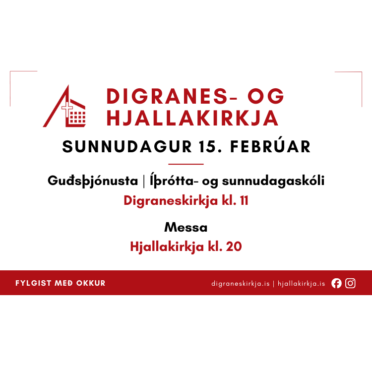 Digraneskirkja ▪️ Messa kl. 11 Vinir Digraneskirkju syngja undir stjórn Kristjáns Hrannars organista. Helga Bragadóttir