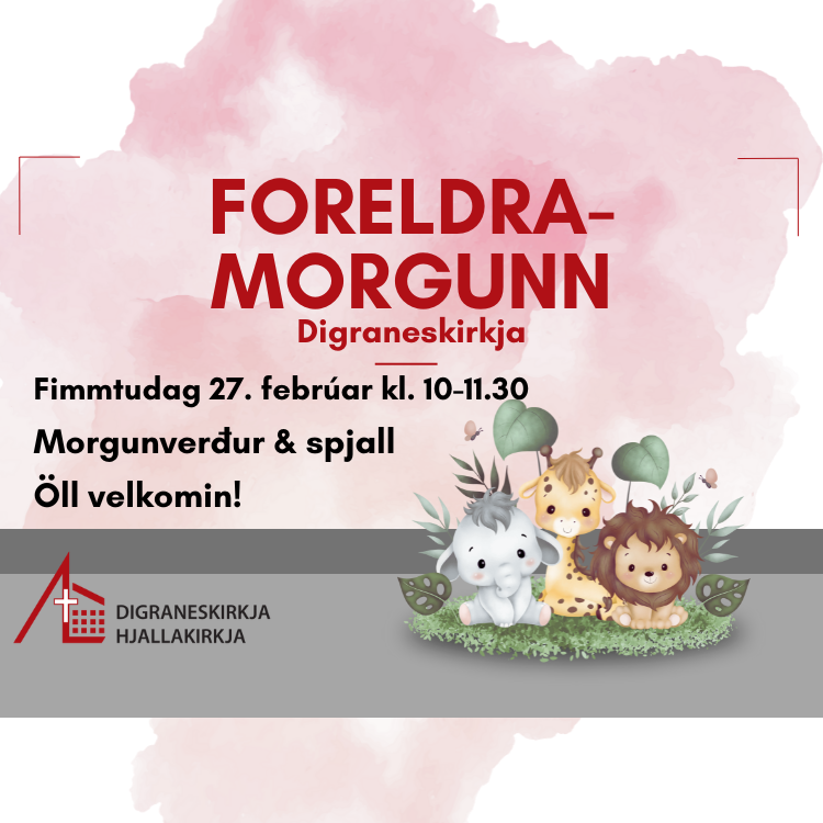 Foreldramorgunn verður á sínum stað á fimmtudaginn í Digraneskirkju kl. 10 Morgunverður og heitt á könnunni 😊 Hlökkum til að sjá ykkur!