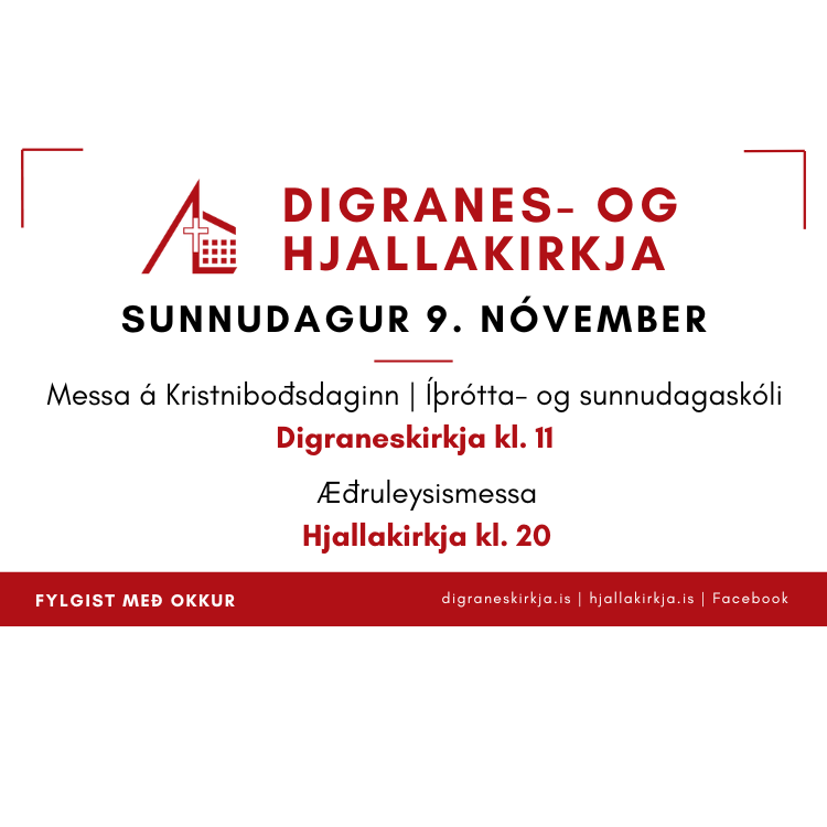 Digraneskirkja ▪️Messa á Kristniboðsdaginn kl. 11. Kristján Hrannar og Helga Margrét leiða hressandi söng. Nemendur úr Tónskóla Sigursveins